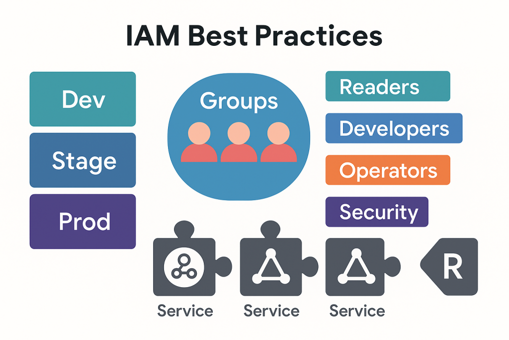 - Map humans to groups (Readers, Developers, Operators, Security).