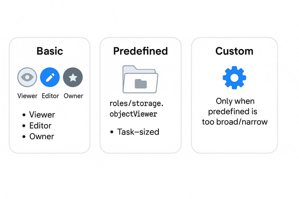 ) are task-sized—prefer these. - Custom roles only when predefined is too broad/narrow.