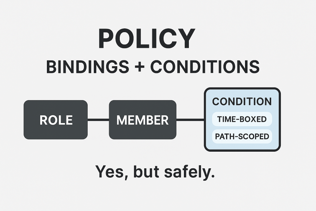 Conditions let you say “yes, but safely” for vendors, incidents, and shared buckets.